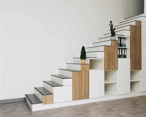 Aménagez un rangement sous votre escalier et optez pour un meuble escalier, constitué d'un ensemble d'espaces de rangement à la structure largement renforcée pour vous permettre de monter dessus (testé à 200kg/marche).cet escalier avec rangement permettra d'optimiser. Ce meuble en escalier 4 niveaux au design contemporain épuré se marie avec tous les styles ! Meubles de séparation design escalier coloris.