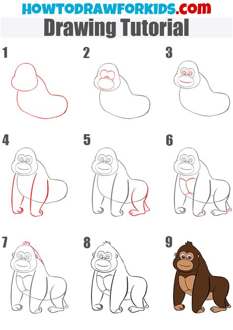 How to draw a gorilla step by step, learn drawing by this tutorial for kids and adults. Mountain silver back gorilla endangered wildlife cartoon mono line drawing. Draw the nose in between the middle and bottom oval. After, use a pen to draw in the final lines. Next we can add some features to the face.