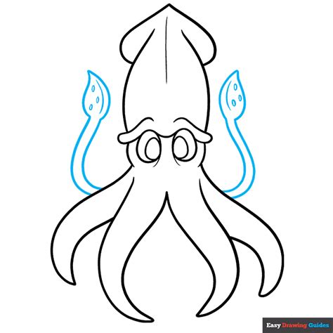 Enclose the body of the squid. Draw two ovals, each with a small oval inside. How to draw a squid step 1. This will form the body, or mantle, of the squid. Draw two upward curves from both sides of your eyes.